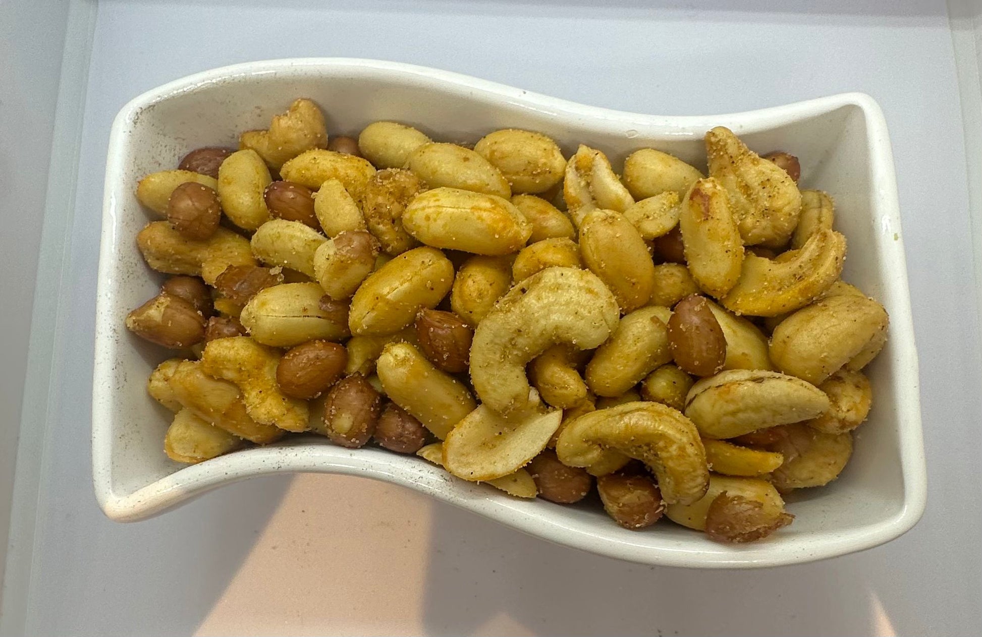 Een heerlijk vers gebrande noten mix gekruid met Indonesische kruiden,