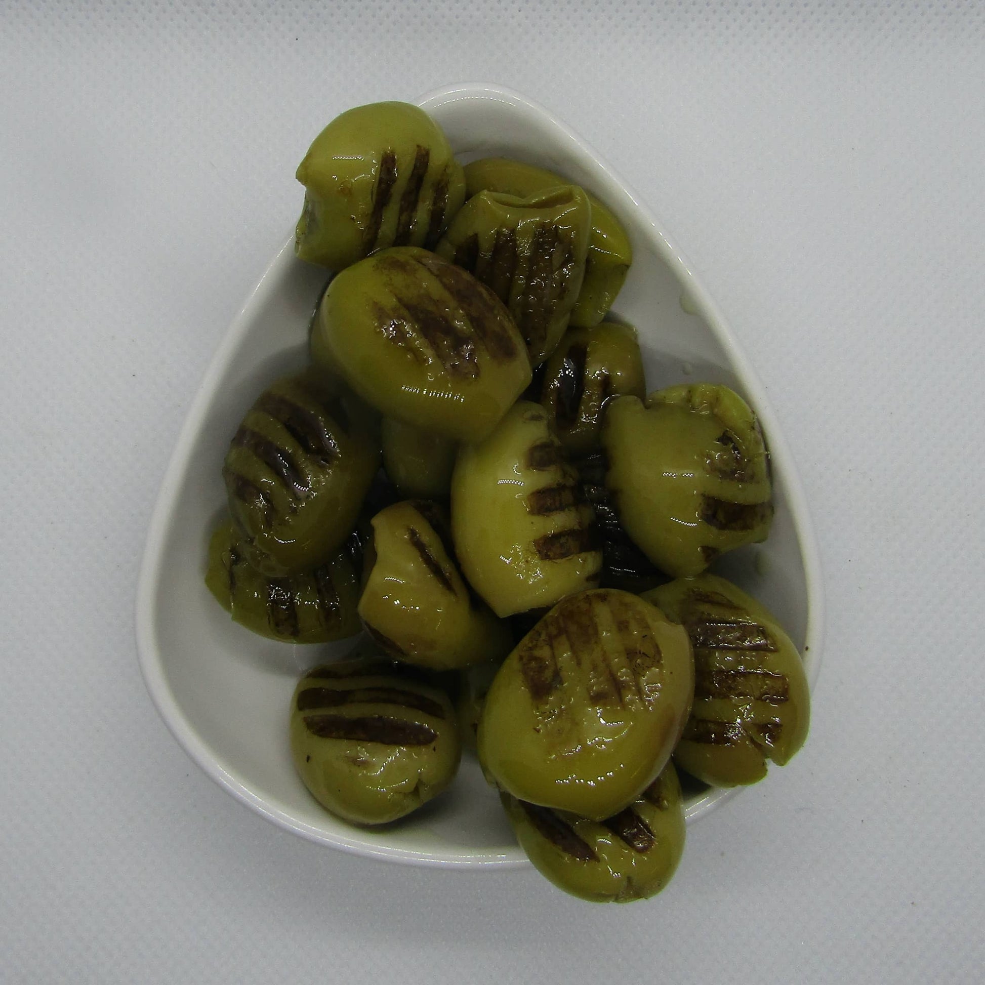 Turkse gegrilde olijven gemarineerd in knoflook.
